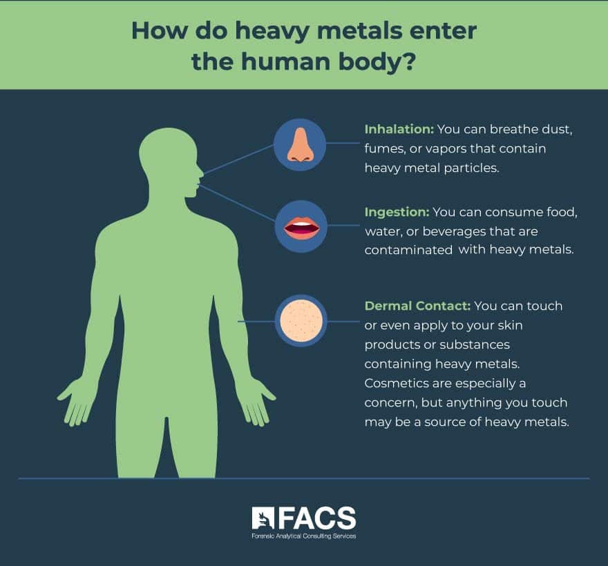 Bioaccumulation is the usual means for heavy metal poisoning to occur. Once heavy metals enter your body, they can be stored in your brain, your liver, your blood — every major organ and system in your body is susceptible to heavy metal deposits. But your body has limited mechanisms to eliminate certain toxic heavy metals efficiently. That build-up can result in serious negative consequences for your health. Children are especially predisposed