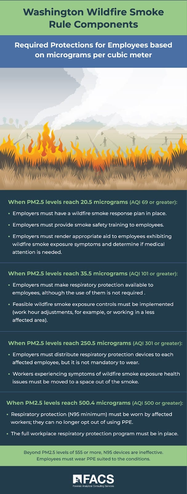 Should you need help making sure you understand the new wildfire smoke rule, reviewing your wildfire smoke preparedness or recovery and response plan, training employees, or have other concerns about the dangers your employees face from wildfire smoke, call FACS at 888-711-9998 or use our contact form to speak with a FACS team member.