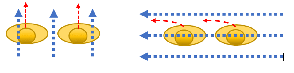 If the people are the source, direction of flow can be important. Below is a diagram showing the potential for improving conditions through directional air flow and the possibility of increasing risk. Blue arrows indicate the direction of air movement, red arrows indicate exhaled breath.